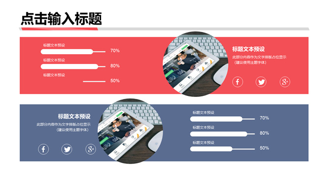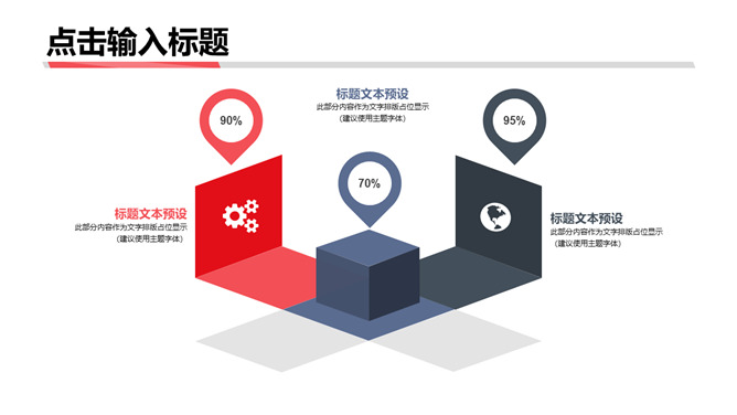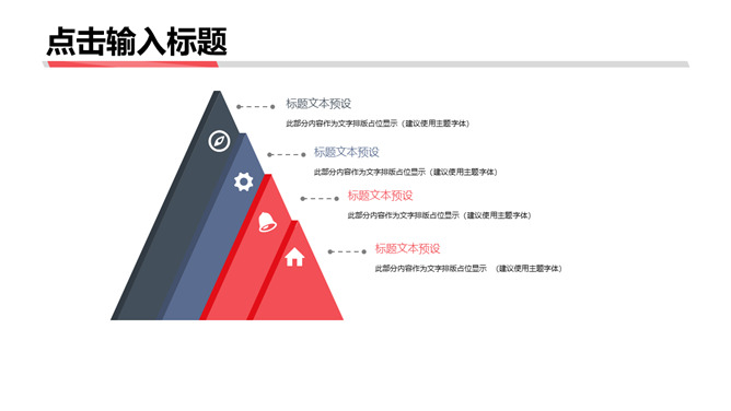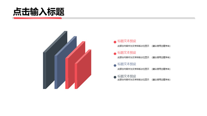 时尚简约动感通用PPT模板。一套简约大气通用幻灯片模板,经典红色和灰蓝配色,时尚动感几何形状装饰。