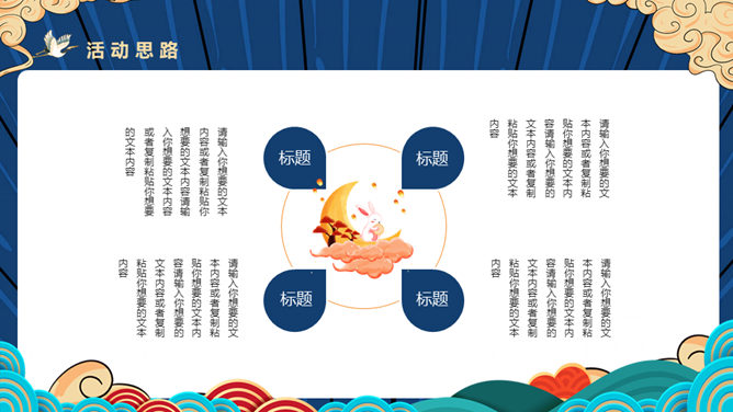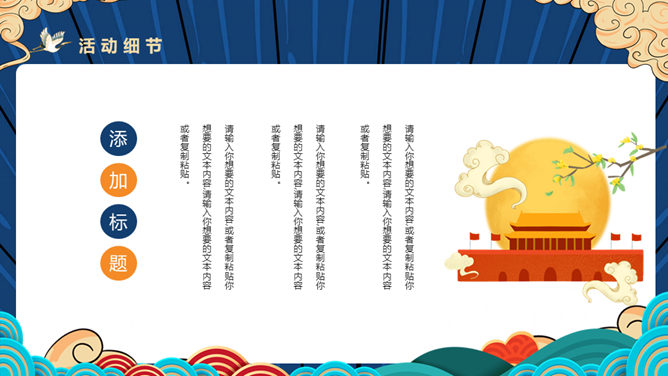 国潮风中秋国庆活动策划PPT模板。一套国庆中秋同情活动策划幻灯片模板,精美创意国潮风设计,动态播放。