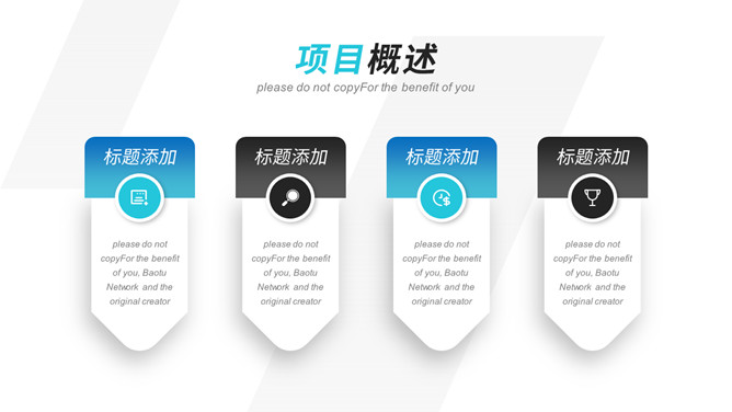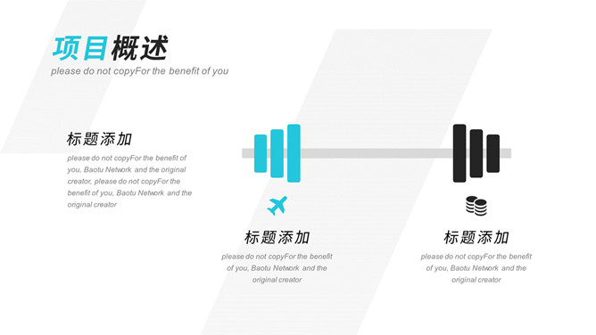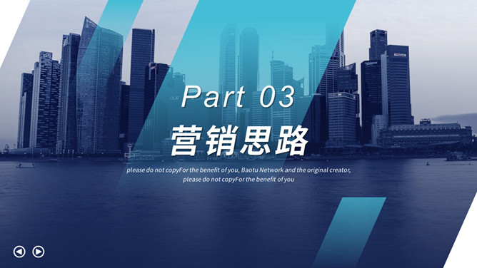 大气商务项目计划书PPT模板。一套商业创业计划书幻灯片模板,城市楼群剪影背景,浅蓝主色调,简约大气通用。