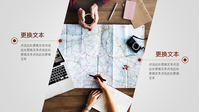 杂志风旅行相册画册PPT模板。一套旅游旅行相册幻灯片模板,多种图文排版类型,也可用于其他图文类型演示。