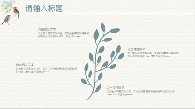 淡雅复古水彩花鸟PPT模板。一套欧式复古风幻灯片模板,淡雅莫兰迪色配色,水彩效果花朵小鸟主元素设计。