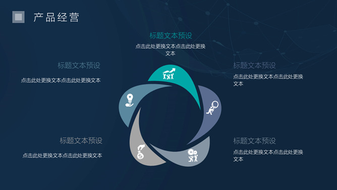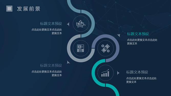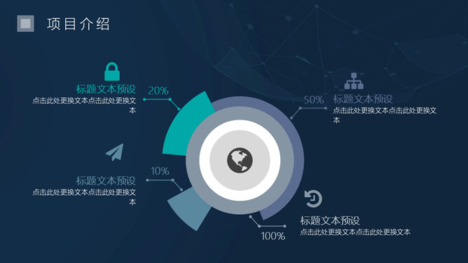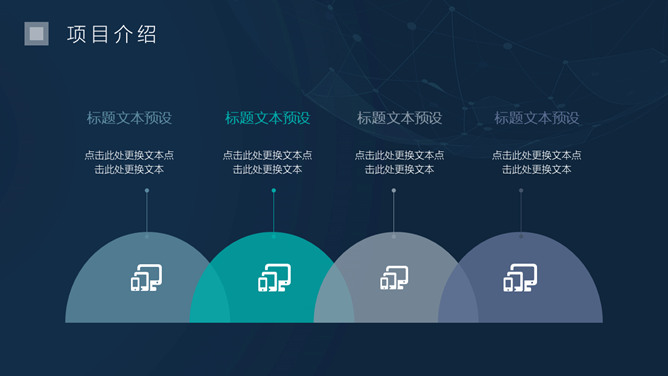 简洁科技感商务PPT模板。一套商务商业创业计划书幻灯片模板,简约设计,深蓝背景,很有科技感,动态播放效果。
