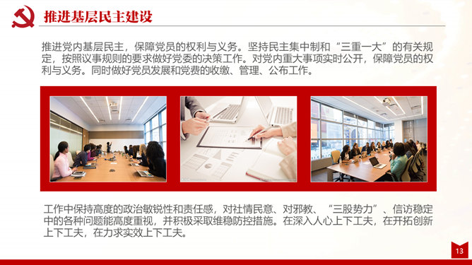 支部述职述廉述责报告PPT模板。一套党政报告幻灯片模板,简洁大气,适合党委、党支部书记述职述廉等用途。
