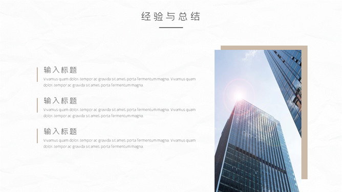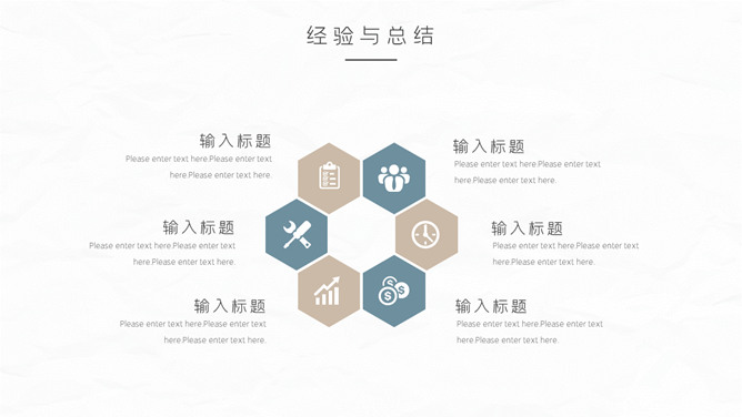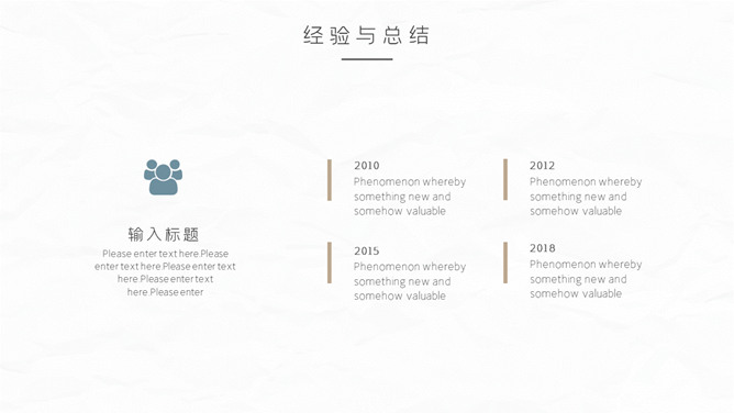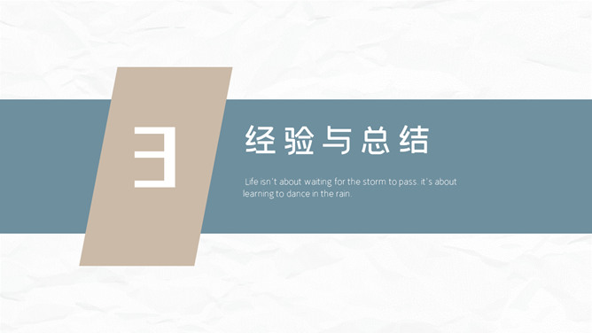 大气简洁年终汇报PPT模板。一套年终工作报告总结幻灯片模板,质感纸质纹理背景,大气稳重配色,简约设计风格。