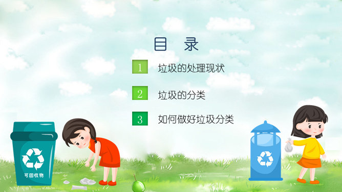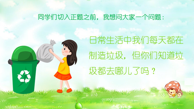 保护环境从我做起班会PPT模板。一套中小学主题班会幻灯片模板,卡通设计风格,爱护环境从我做起主题。