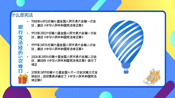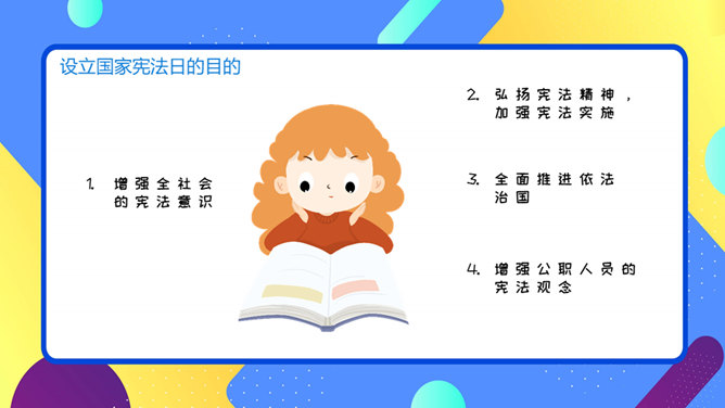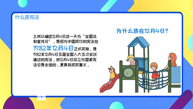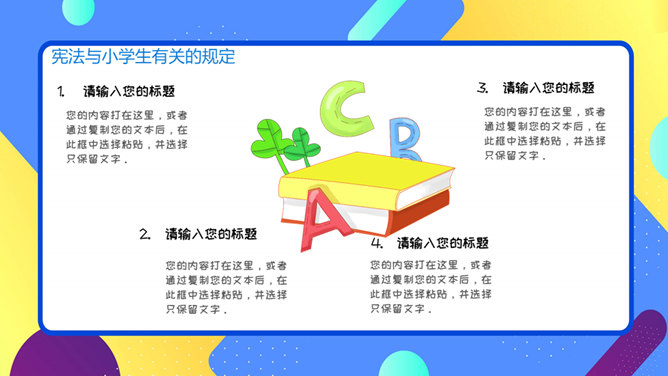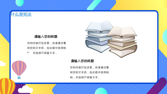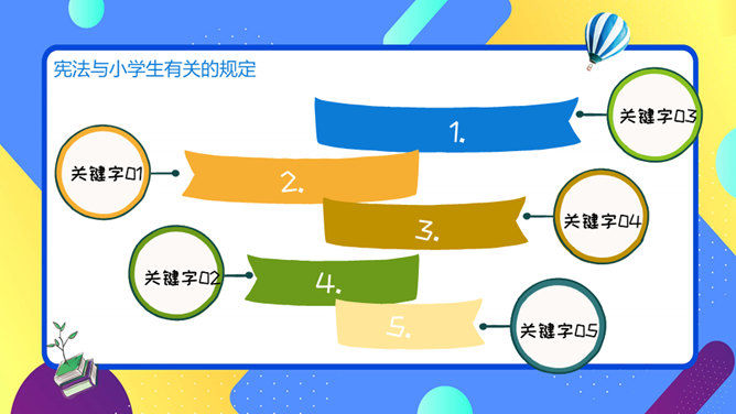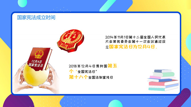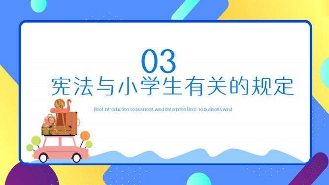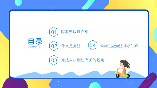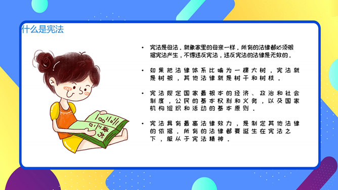 小学生宪法知识班会PPT模板。一套中小学宪法知识主题班会幻灯片模板,色彩艳丽,卡通设计风格,动态播放。