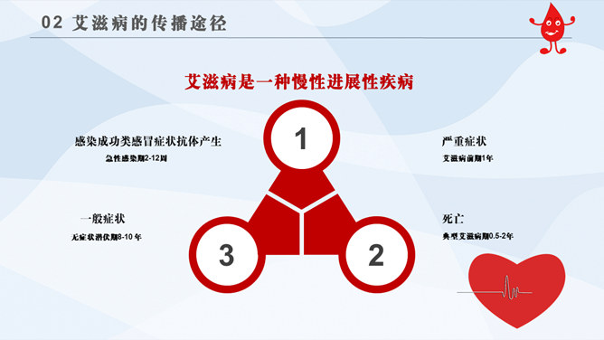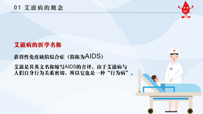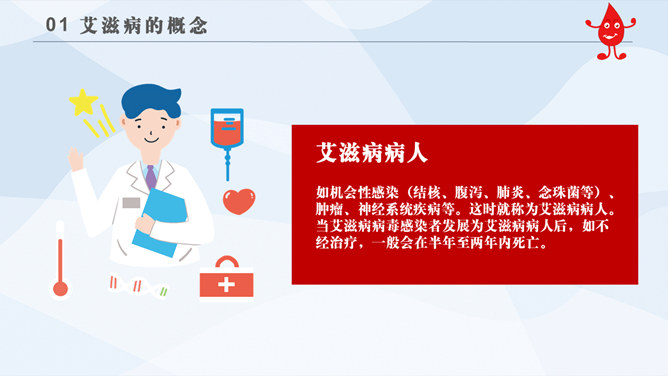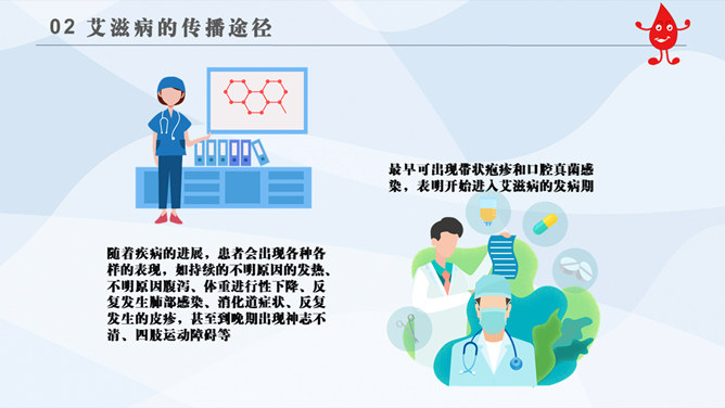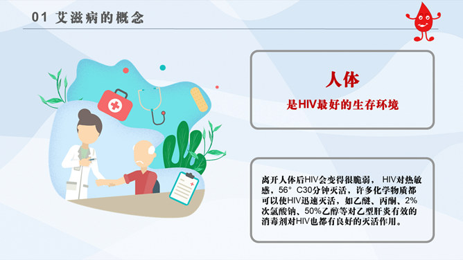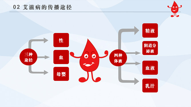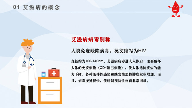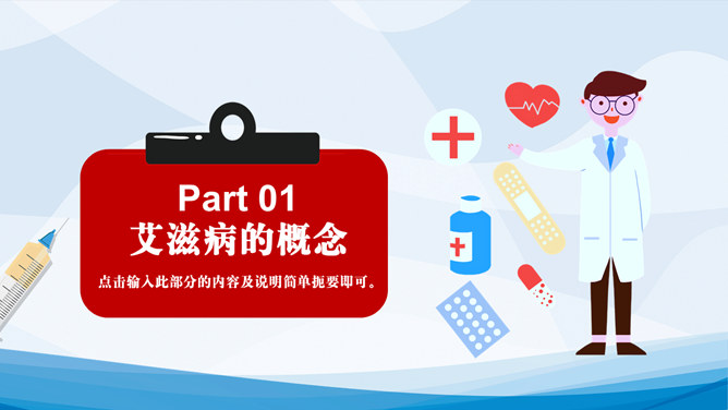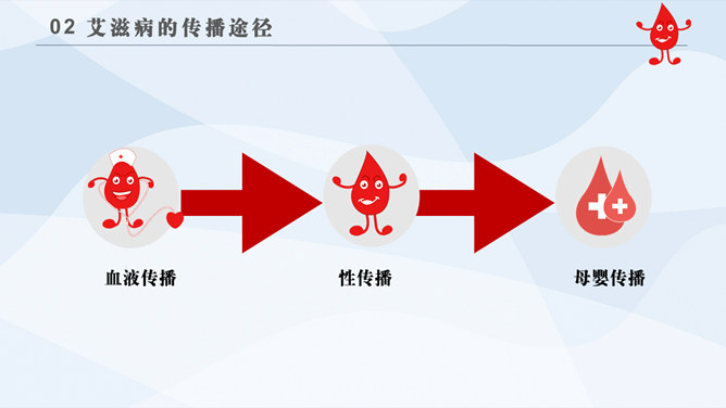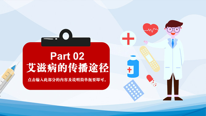 世界艾滋病日PPT模板。一套世界艾滋病日主题幻灯片模板,艾滋病的概念和传播途径,艾滋病的防护措施和灭活途径。