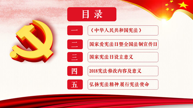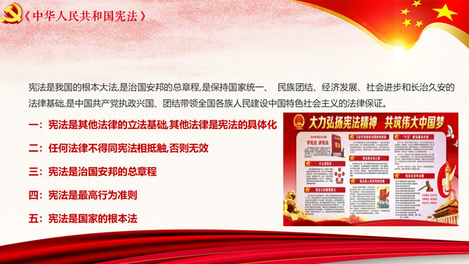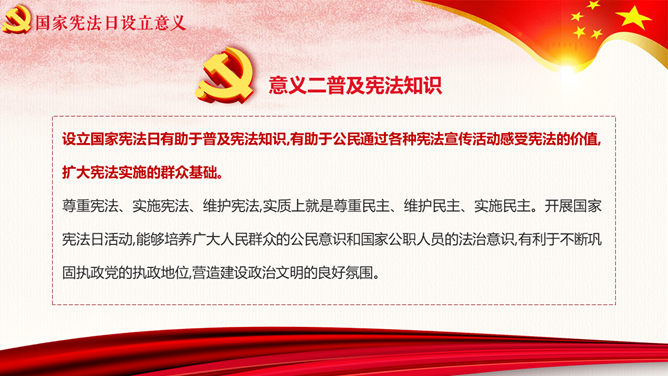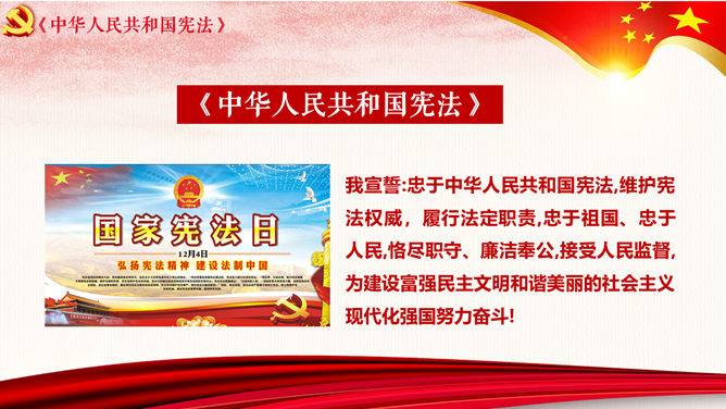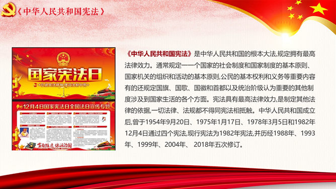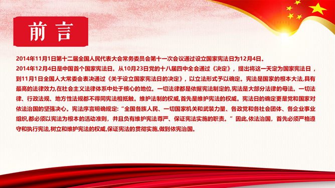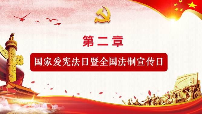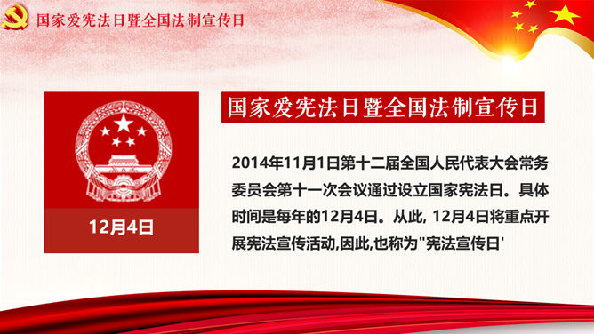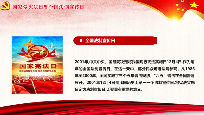 国家宪法日法制教育PPT模板。一套宪法日主题幻灯片模板,适合宪法知识等相关法制普法宣传教育。
