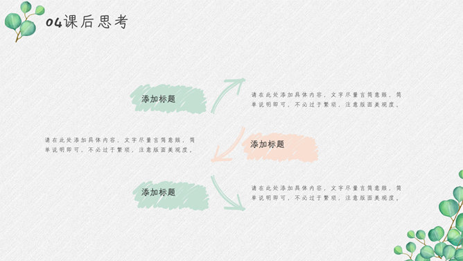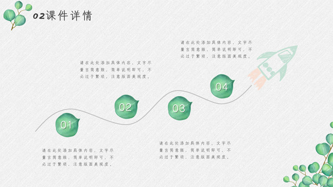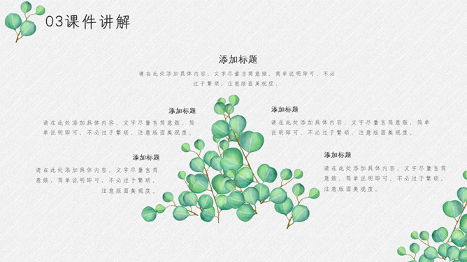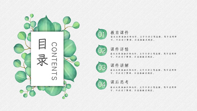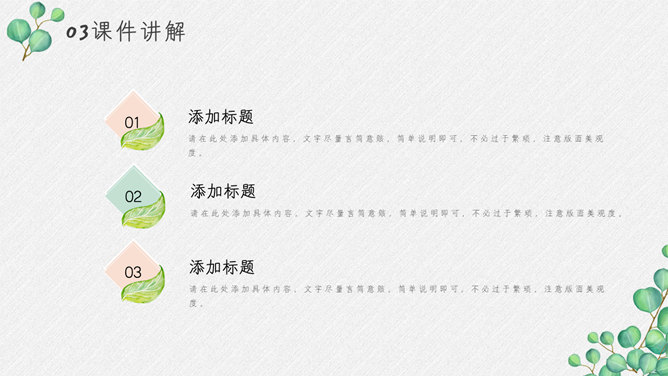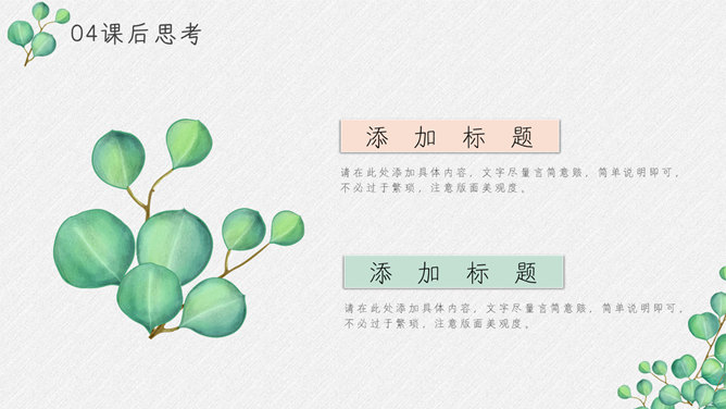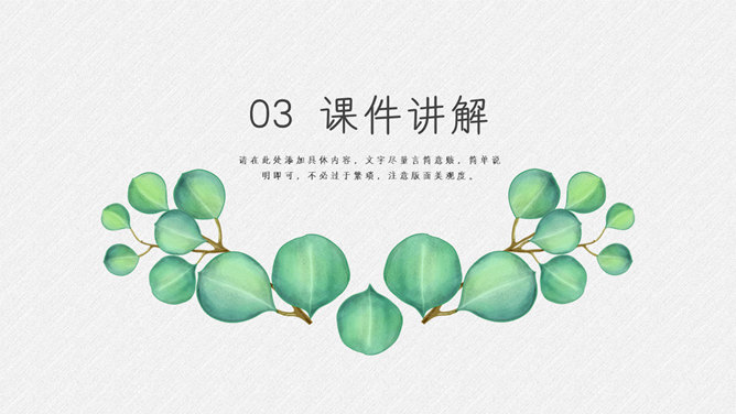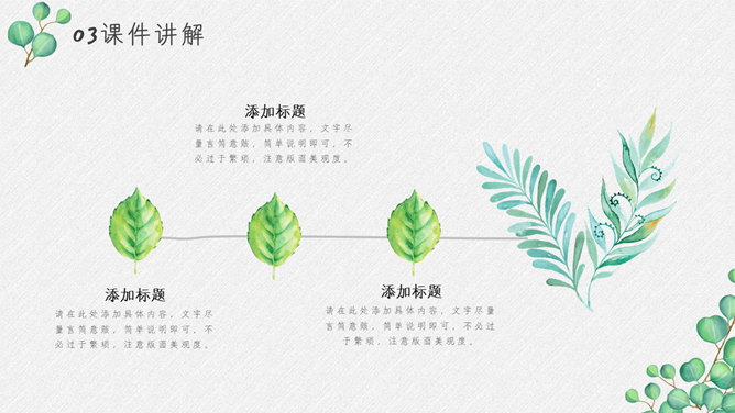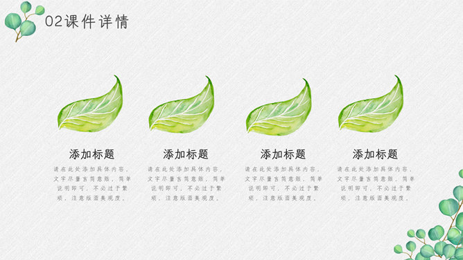 淡雅绿色叶子小清新PPT模板