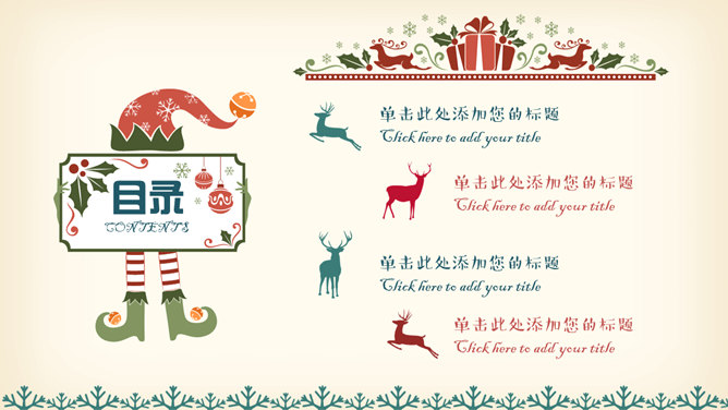 复古风喜庆圣诞节PPT模板。一套圣诞节主题幻灯片模板,复古效果设计,铃铛、驯鹿、礼盒喜庆圣诞节元素装饰。