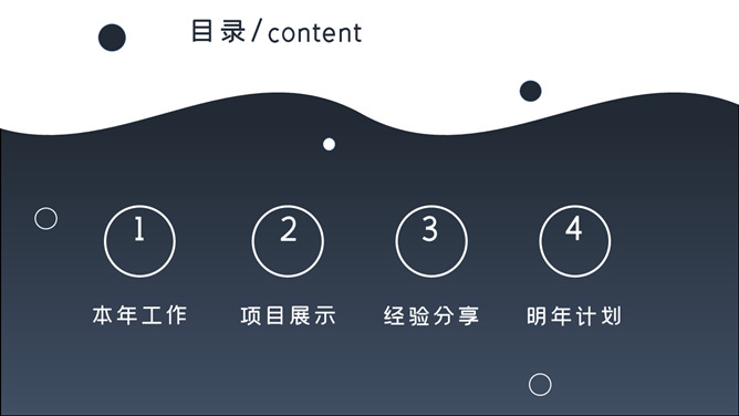 简洁通用年终总结PPT模板。一套年终工作汇报总结幻灯片模板,简约大气,深蓝主色调,通用性强,动态播放效果。