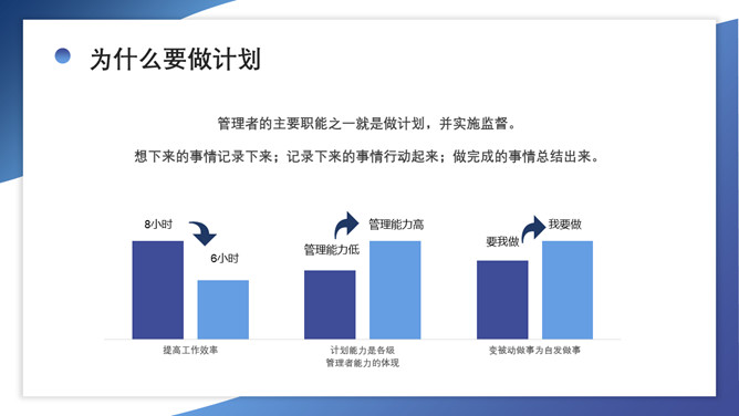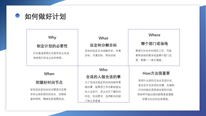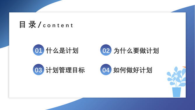 如何制定计划培训PPT模板。包括什么是计划、为什么要做计划、计划管理目标、如何做好计划四部分。