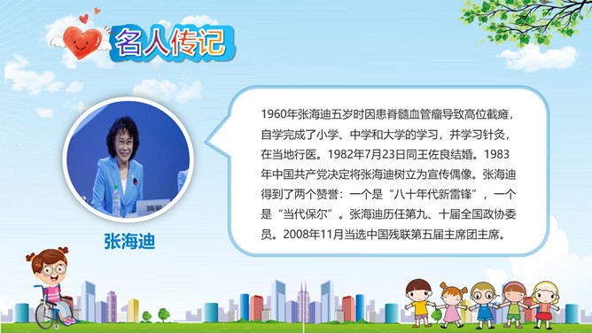 卡通全国助残日关爱残疾人PPT模板