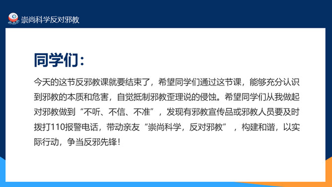 崇尚科学反对邪教教育班会PPT模板
