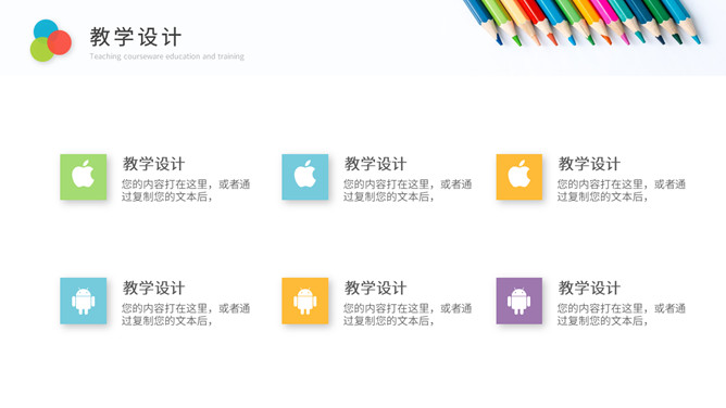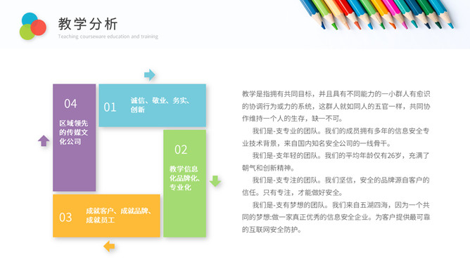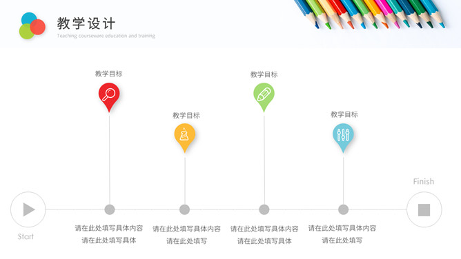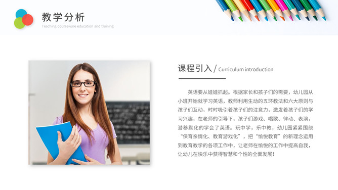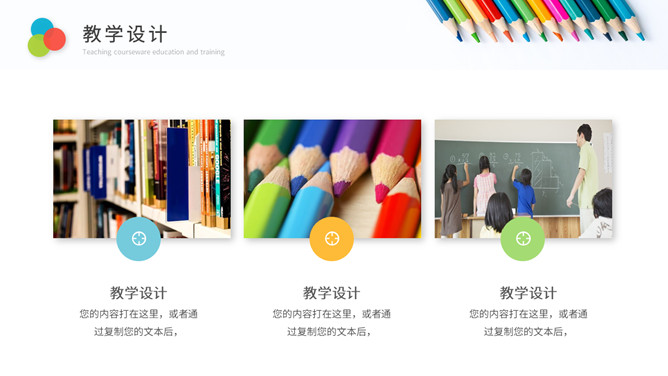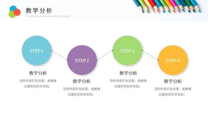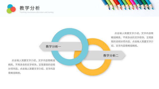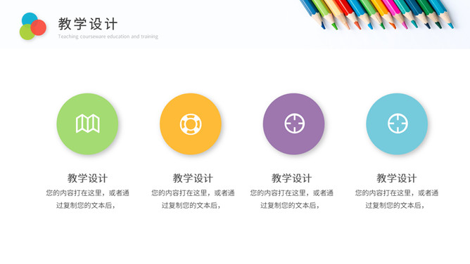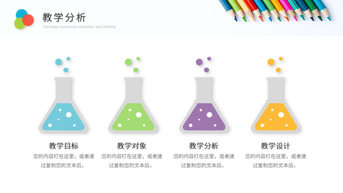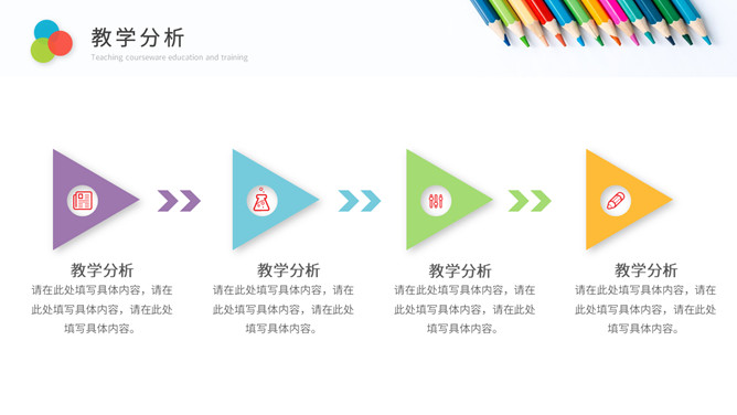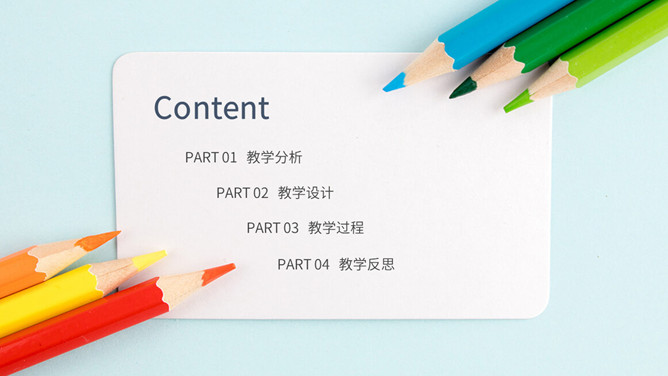 彩色铅笔教师说课教学课件PPPT模板。一套教育教学相关幻灯片模板,铅笔元素背景,简约设计,彩色配色。