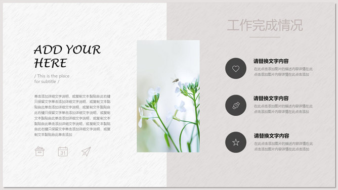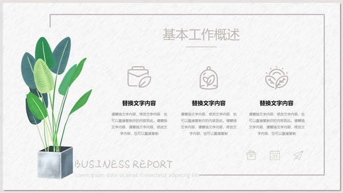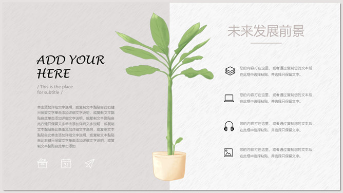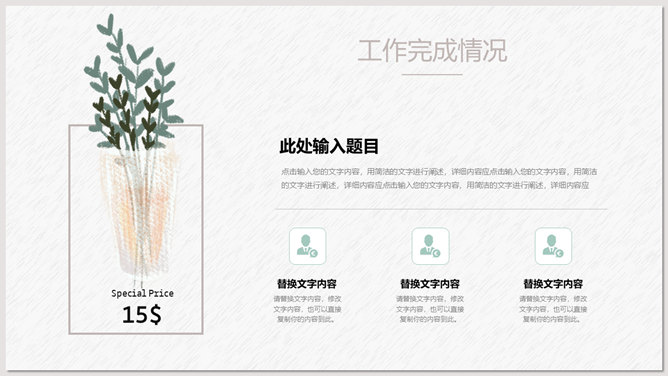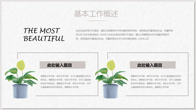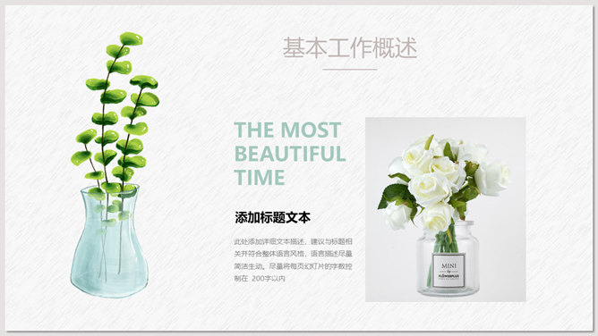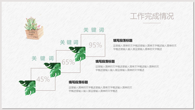 淡雅清新水彩绿植PPT模板。一套淡雅小清新幻灯片模板,绿色水彩多肉植物装饰,简约唯美,通用性强。