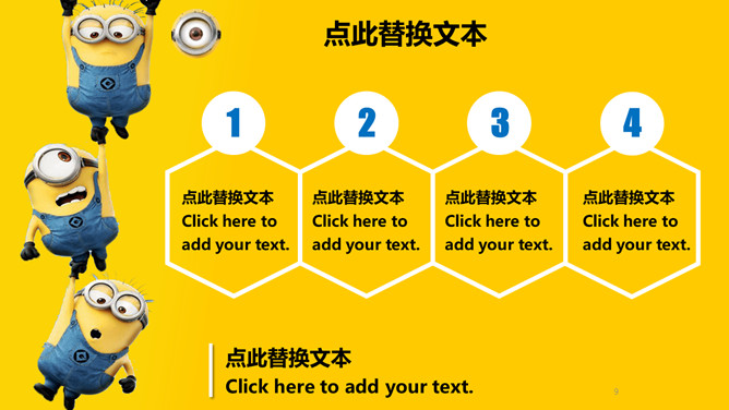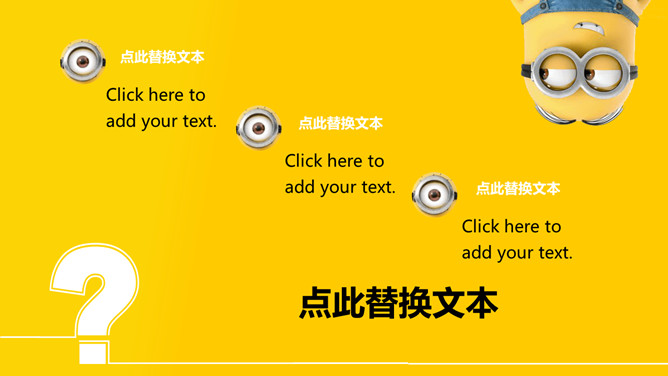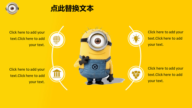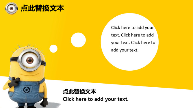 可爱小黄人PPT模板。一套可爱卡通风格幻灯片模板,卑鄙的我小黄人主题设计,适合小黄人电影介绍等用途。