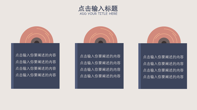 复古范音乐唱片PPT模板。一套音乐主题幻灯片模板,唱片机背景,简约设计,复古文艺范风格,适合音乐相关内容。