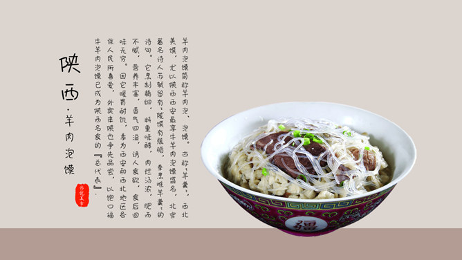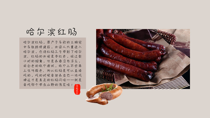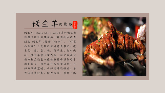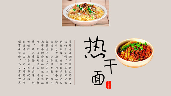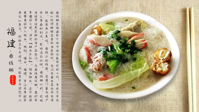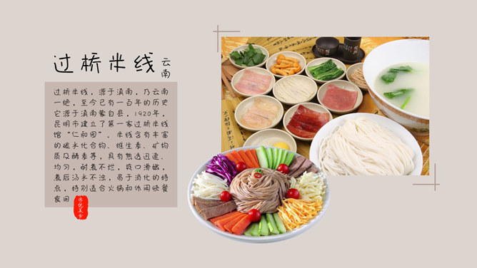 中国各地美食介绍PPT模板。一套介绍中国各地代表性的经典美食的幻灯片模板,精美简约,很有设计感。