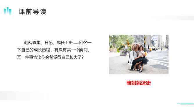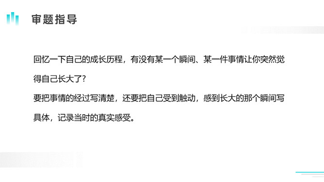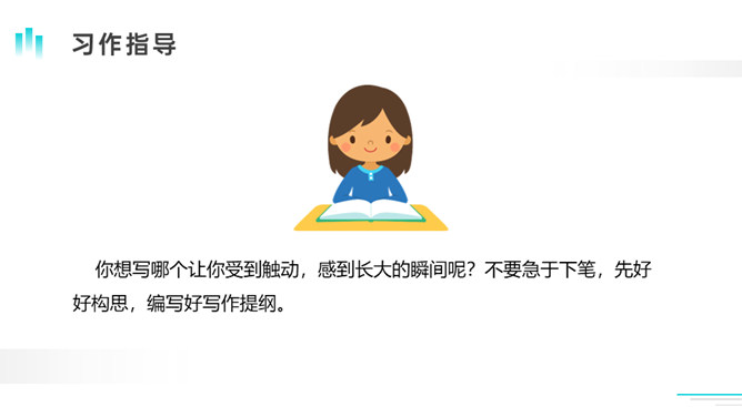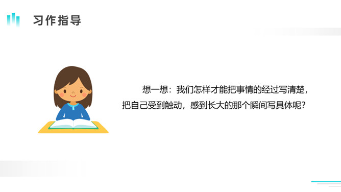 今天,老师非常高兴,因为从短短的一节课,我看到了每个同学都在长大!因为你们会倾听、肯思考、勤举手、常发言。这不正是长大的表现吗?老师衷心地祝贺你们,你们——长大了!在成长的过程中,我们有过欢乐,有过烦恼,学会了本领,拥有了愿望。老师祝愿你们能学会更多的本领,用双手创造自己美好的未来!课下,请推荐你认为最好的作品,由班长负责配图,形成我们的《我们的成长足迹》。所属专题:那一刻,我长大了ppt。