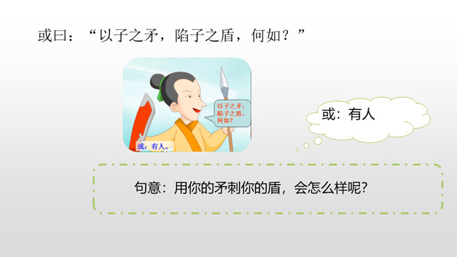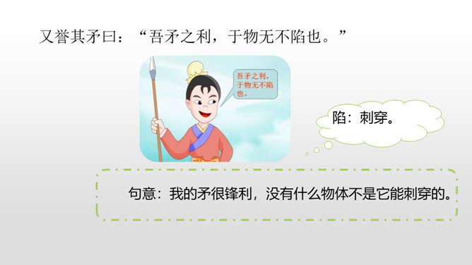 1.学习本课生字、生词。(重点)2.理解课文内容,知道自相矛盾的含义。(难点)同学们,大家都听过哪些寓言故事?认真读,圈出本课新词语,再思考:课文主要向我们介绍了什么?通读全文,说说文章讲了一件什么事。所属专题:自相矛盾ppt。