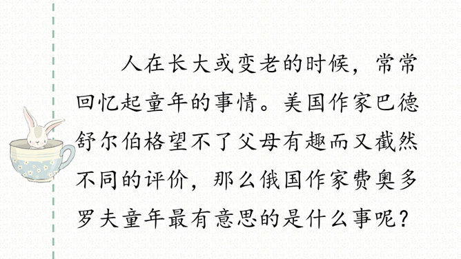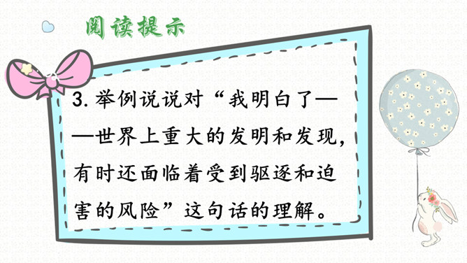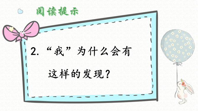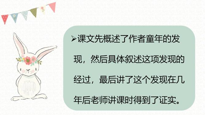 1.我是怎样发现胚胎发育规律的?结果怎样?2.“我”为什么会有这样的发现?3.举例说说对“我明白了——世界上重大的发明和发现,有时还面临着受到驱逐和迫害的风险”这句话的理解。(1)自读课文,要求读得正确流利。(2)找出生字,注意读准字音;理解词语。(3)课文课讲了一件什么事?课文重点写作者童年时发现胚胎发育规律的过程。(4)作者围绕着童年的发现先讲了些什么?再讲了什么?最后讲了什么?所属专题:童年的发现ppt。