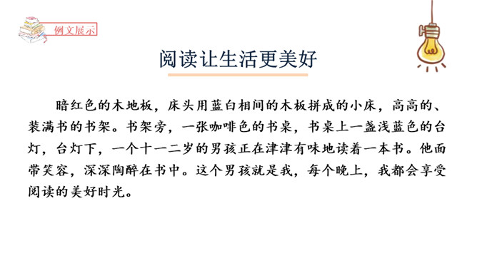 环境的描写,渲染了一种安静和谐的美好氛围。丰富的色彩让人赏心悦目,阅读的美好尽在满面的笑容。分别从读历史书、看小说、读童话书三个方面有条理地写出读书对我的影响。懂得更多的历史知识,感受爱和亲情的无比珍贵,体会友情的美好和力量……阅读除了增加我们的知识储备量外,还可以给我们给心灵以慰藉和滋润给我们打拼的勇气和战胜困难的力量。这正是阅读带来的美好,谁读,谁知道!所属专题:让生活更美好ppt。
