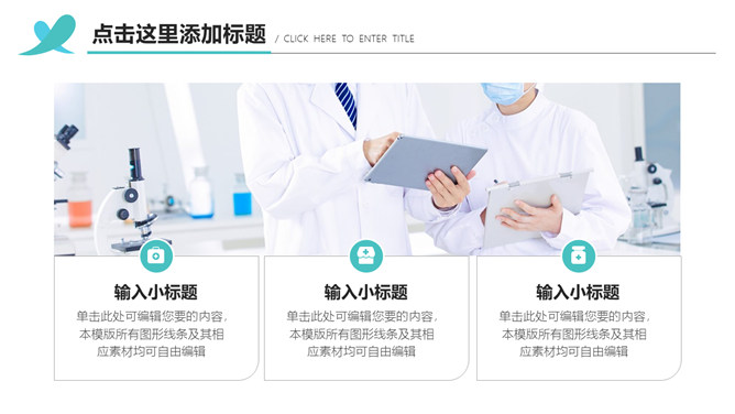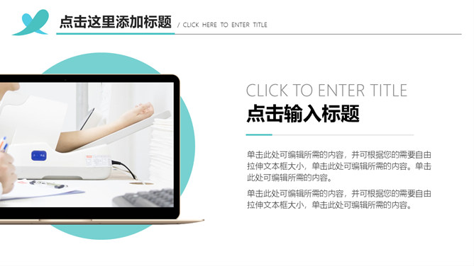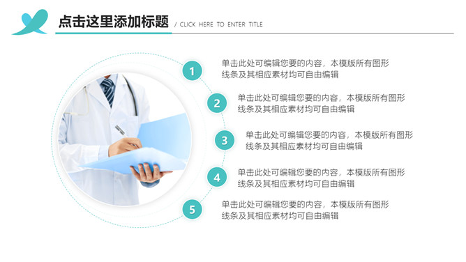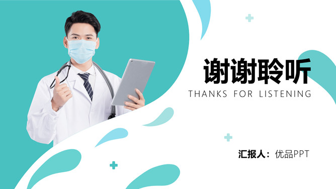 医院科室医疗汇报PPT模板。一套高端大气医疗相关工作总结汇报幻灯片模板,配色清新,简洁大气,动态播放效果。