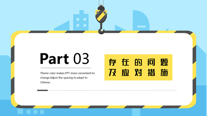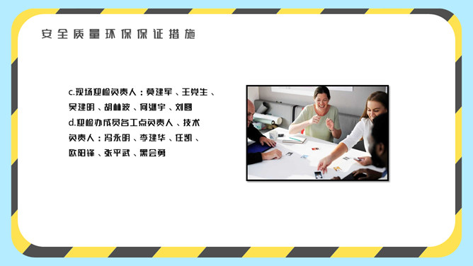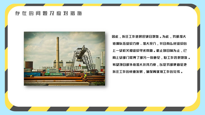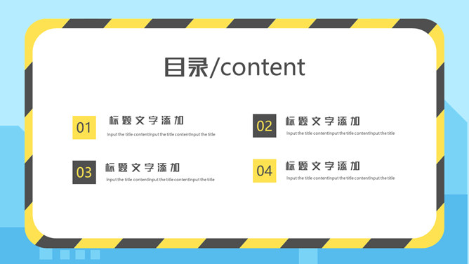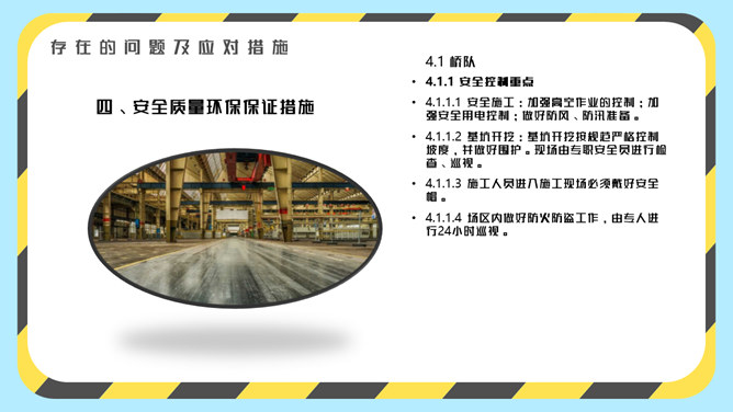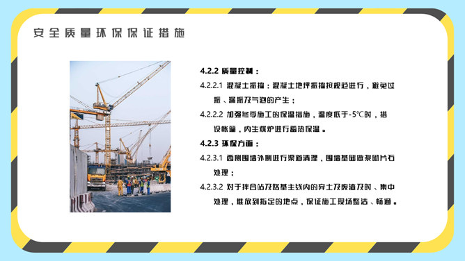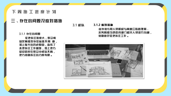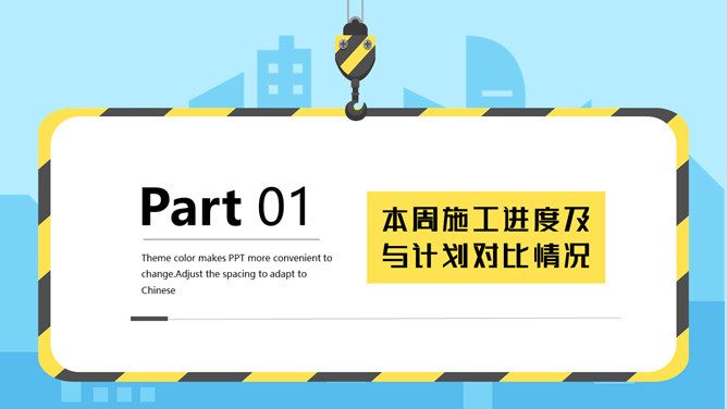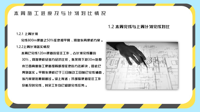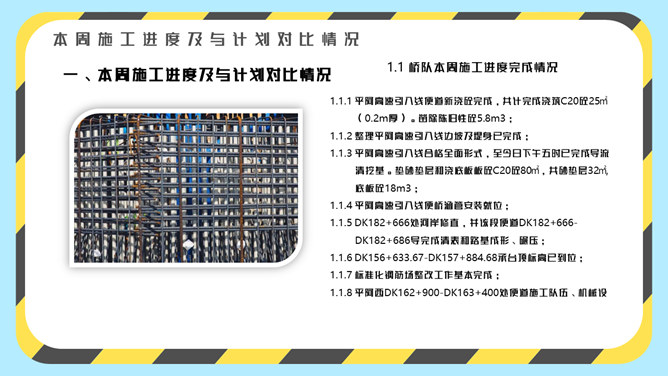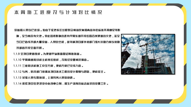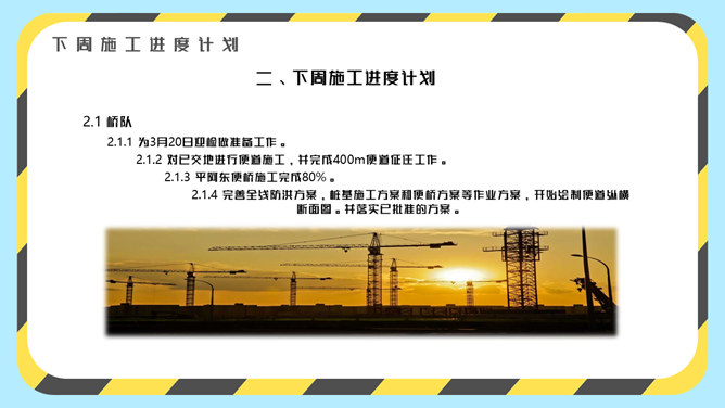 安全生产施工周例会PPT模板。一套安全施工、安全生产周例会或月例会幻灯片模板,黑黄警示元素设计。