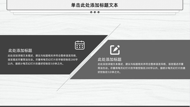 精美简约素雅通用PPT模板。一套简洁通用幻灯片模板,素雅黑灰配色,很有设计感,适合工作汇报总结等用途。