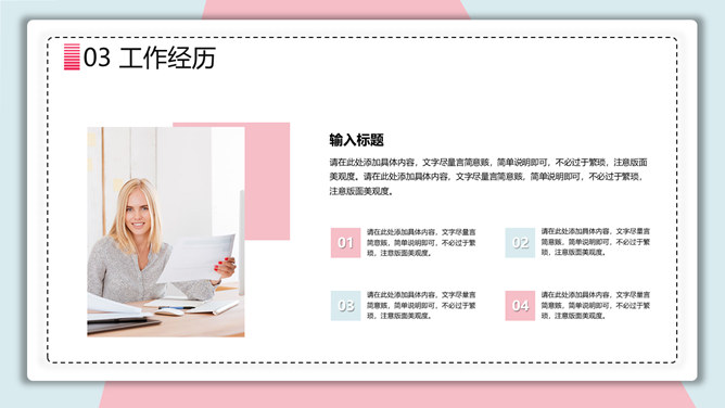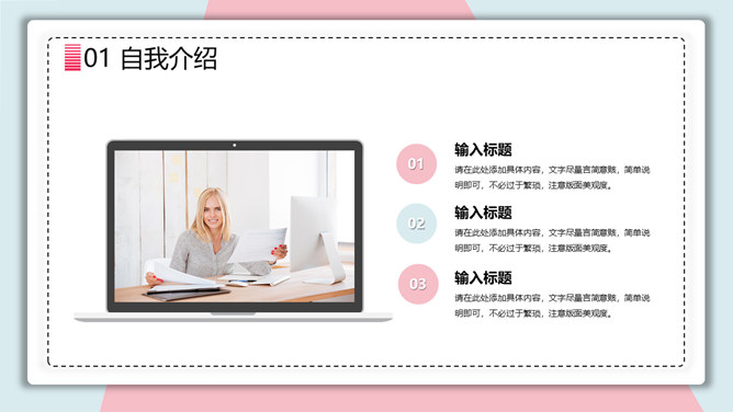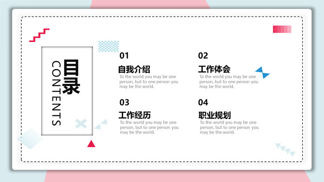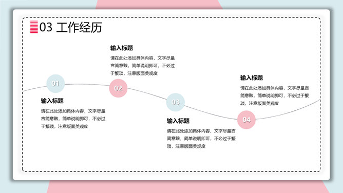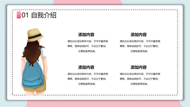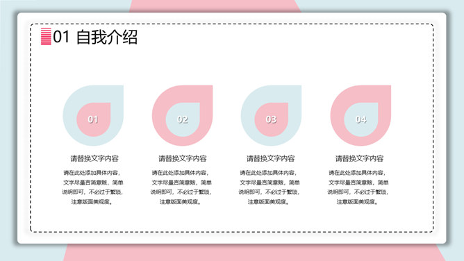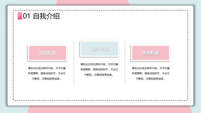 清新蓝粉个人简历PPT模板。一套精美个人简历自我介绍幻灯片模板,清新蓝粉配色,简洁设计,页面类型丰富实用。