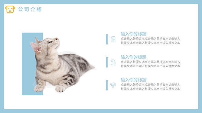可爱猫狗宠物PPT模板。一套宠物主题幻灯片模板,可爱猫狗素材设计,适合宠物店、宠物医院等相关内容使用。