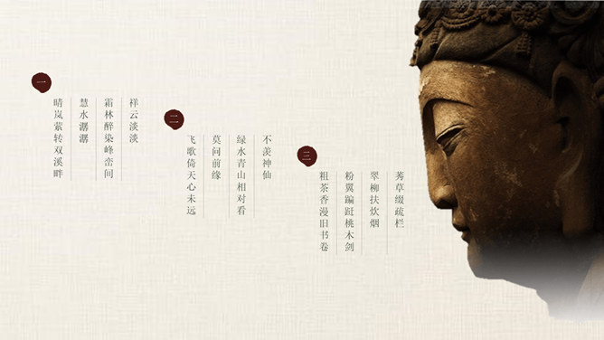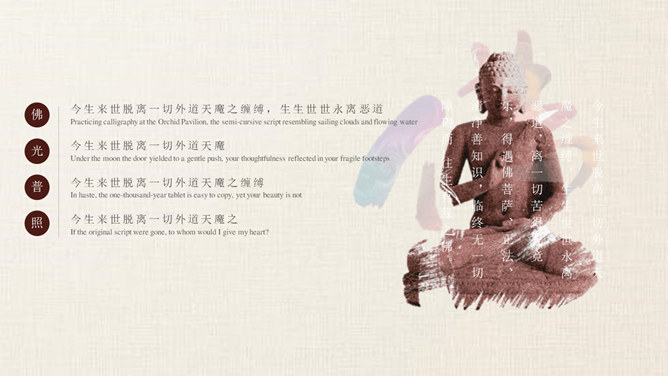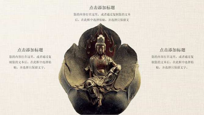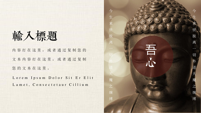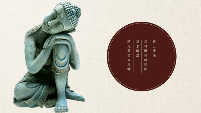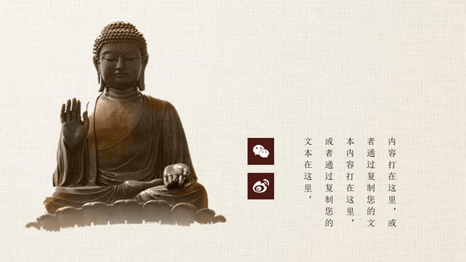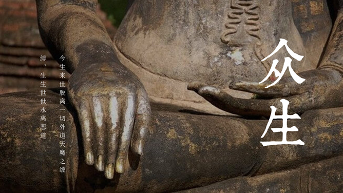 佛学佛教佛法知识介绍PPT模板。一套佛教相关幻灯片模板,适合佛学、佛法相关入门知识培训介绍。