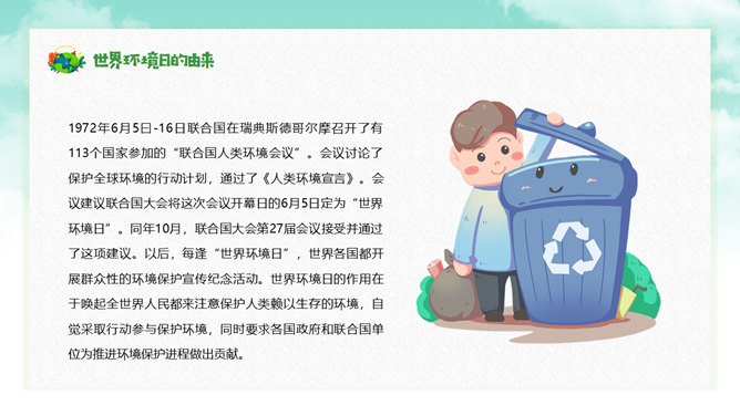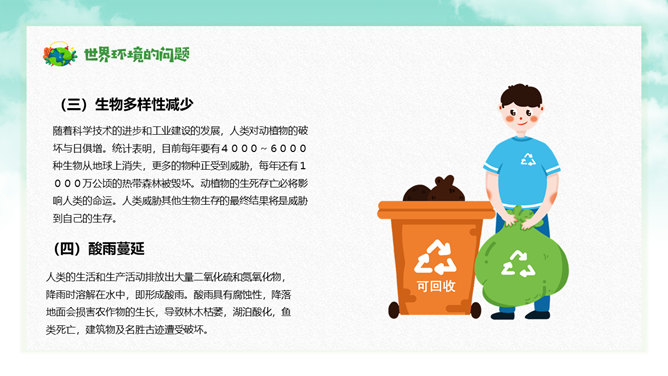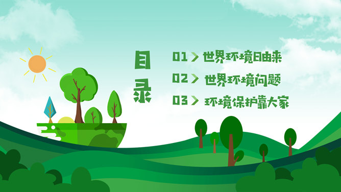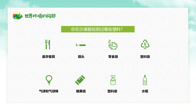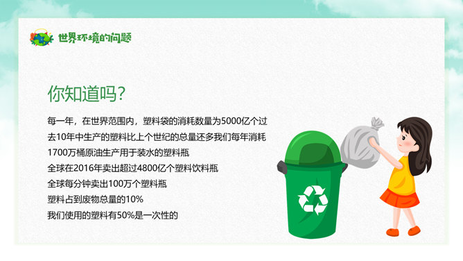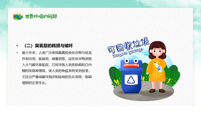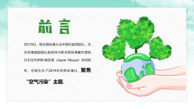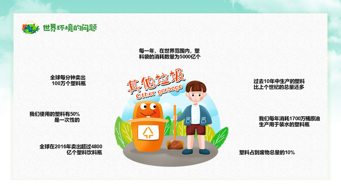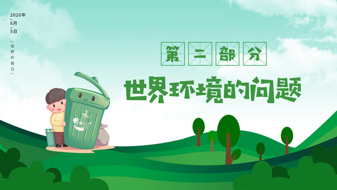 保护环境向污染宣战环保PPT模板。一套环保主题幻灯片模板,介绍了目前的世界环境问题,并呼吁大家保护环境。