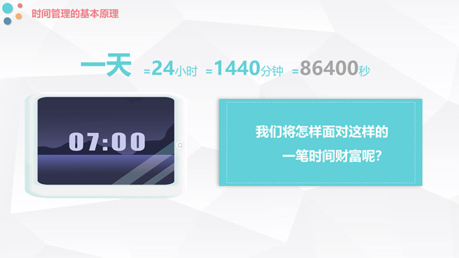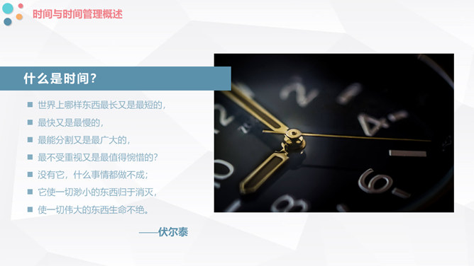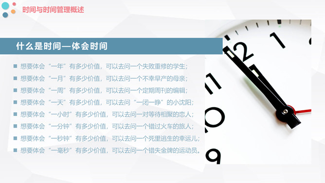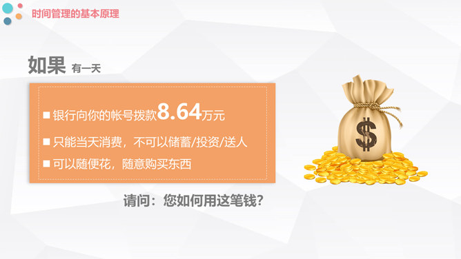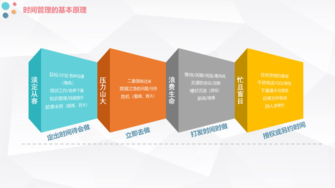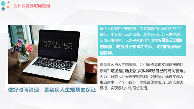 时间管理方法培训PPT模板。为什么需要时间管理、时间与时间管理概述、时间管理的基本原理和具体实施。