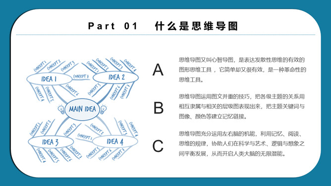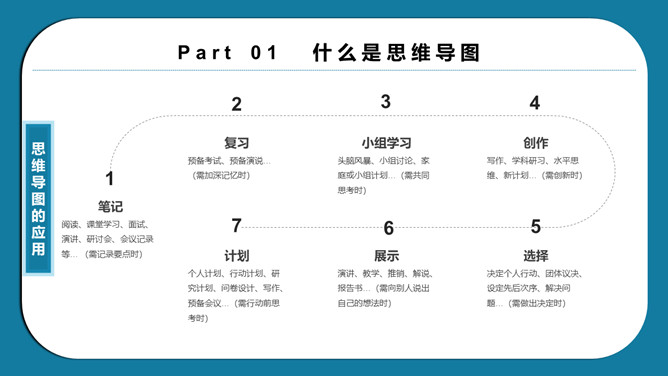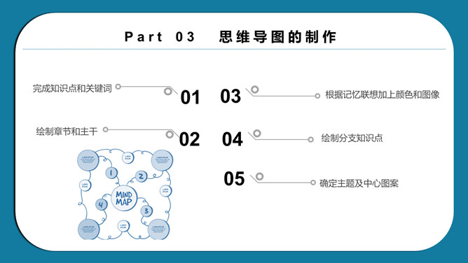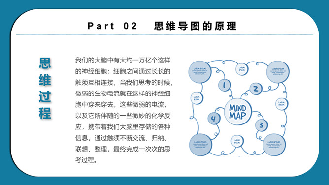 思维导图画法制作方法培训PPT模板。什么思维导图、思维导图的原理、思维导图的制作、思维导图的实际应用。