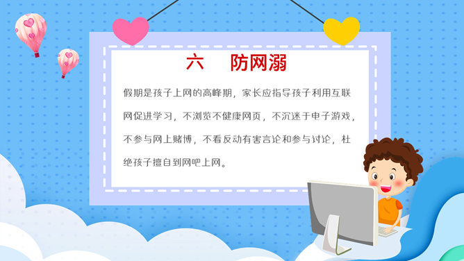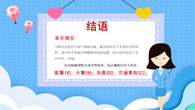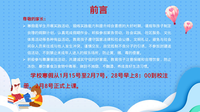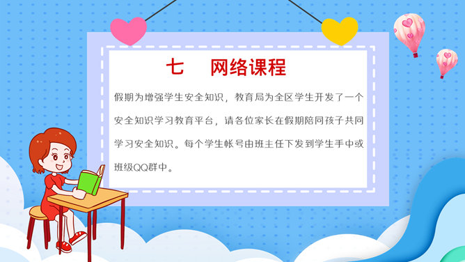 学生放假假期安全教育PPT模板。一套中小学生寒暑假放假安全教育幻灯片模板,致家长的一封信。