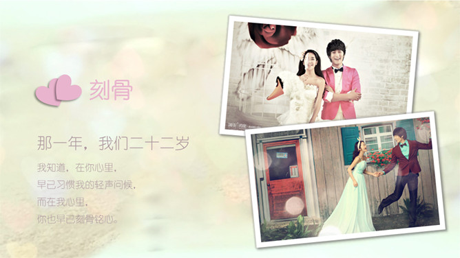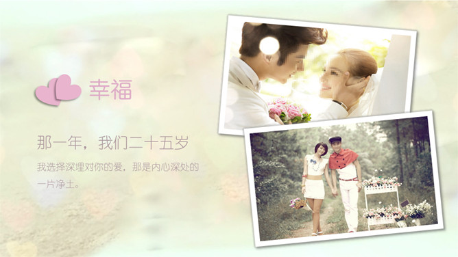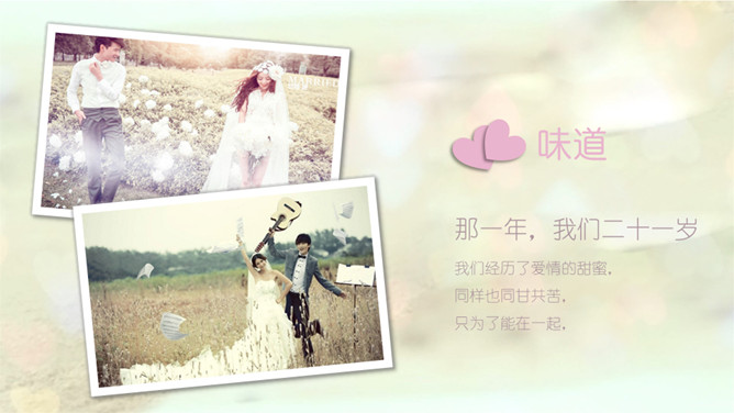 唯美浪漫爱情婚礼相册PPT模板。一套婚礼相册幻灯片模板,唯美梦幻浪漫,适用婚礼照片展示或爱情纪念等。