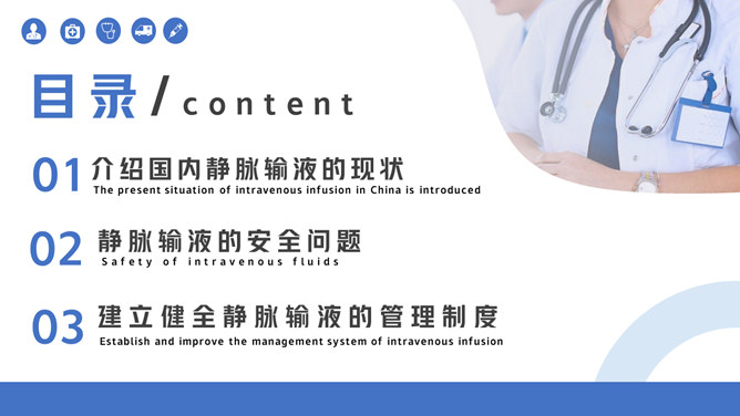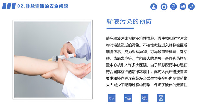 静脉输液的安全管理PPT模板。介绍国内静脉输液的现状、静脉输液的安全问题、建立健全静脉输液的管理制度。