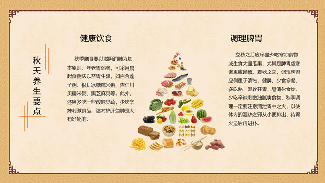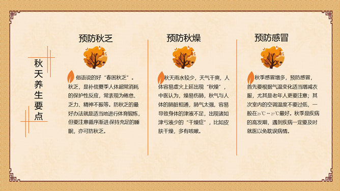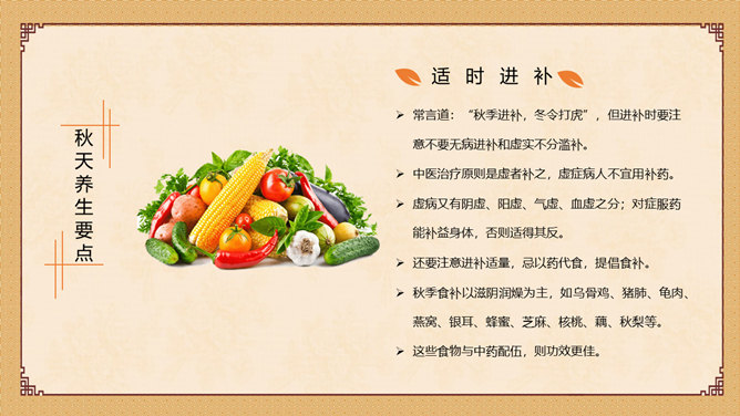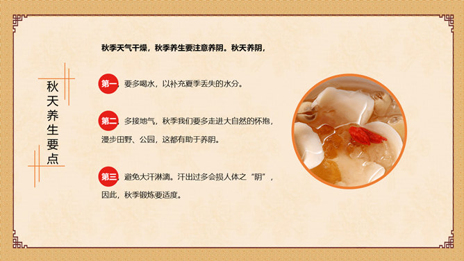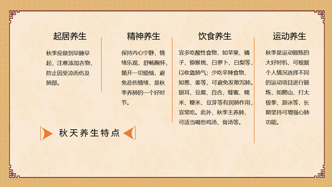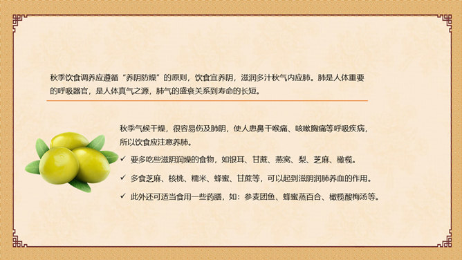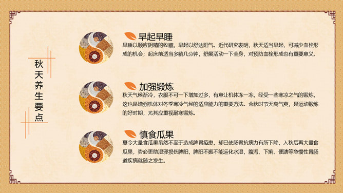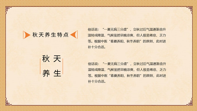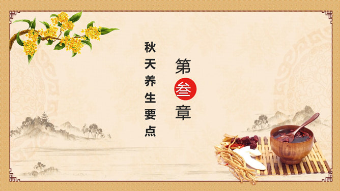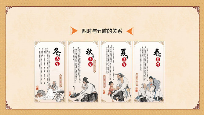 中医养生知识讲座PPT模板。一套中医养生知识培训讲座幻灯片模板,中国风设计,中医四季养生之道。