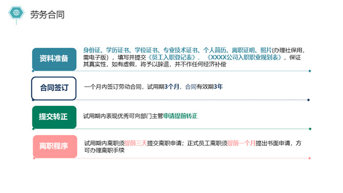 简约新员工入职培训PPT模板。简约设计,清新配色,包括公司简介、组织架构、企业文化、管理制度几个部分。