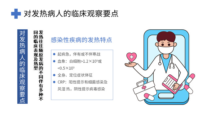 发热病人的护理措施PPT模板。发热的原因及发热机理、发热的临床过程、对发热病人的临床观察要点。
