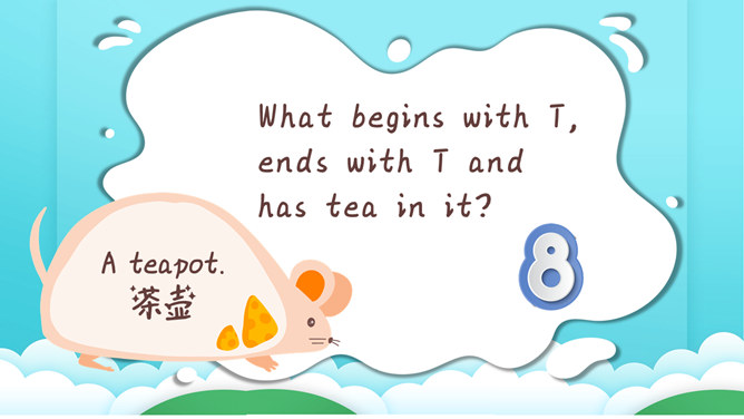 卡通小熊英语猜词游戏PPT模板。一套小学英语教学说课课件幻灯片模板,可爱卡通设计,卡通小熊小动物装饰。