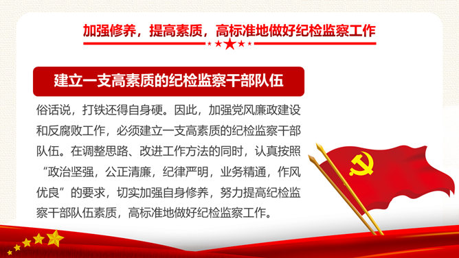 如何做好纪检监察工作PPT模板。与时俱进开拓创新,围绕中心服务大局,调整思路改进方法,加强修养提高素质。