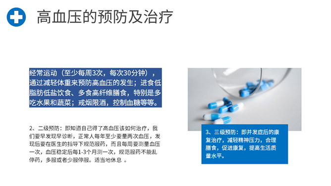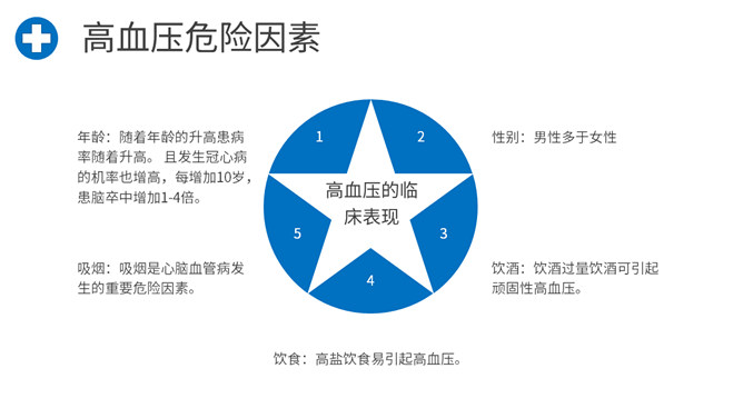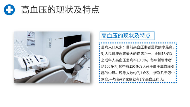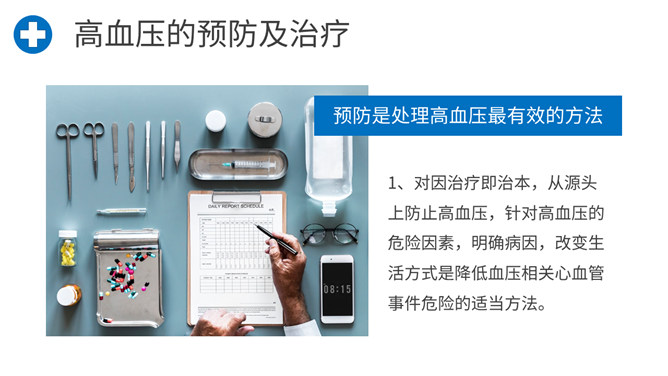 高血压预防治疗知识PPT模板。高血压诊断标准与分类、现状及特点、危险因素、临床表现、预防及治疗。