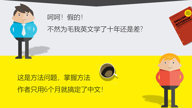 《6个月学会任何一种外语》读书笔记PPT。呵呵!假的!不然为毛我英文学了十年还是差?这是方法问题,掌握方法作者只用6个月就搞定了中文!