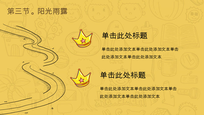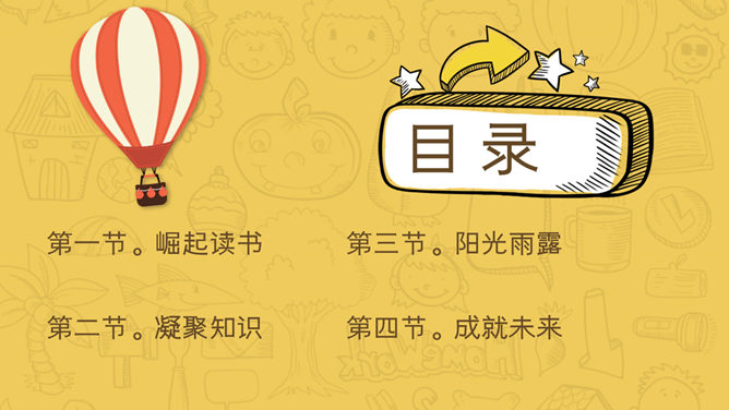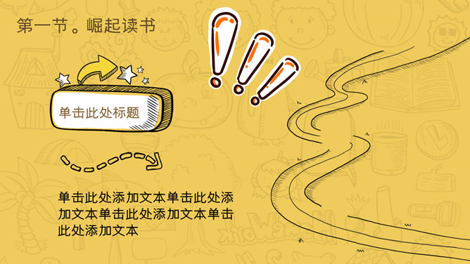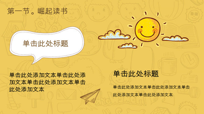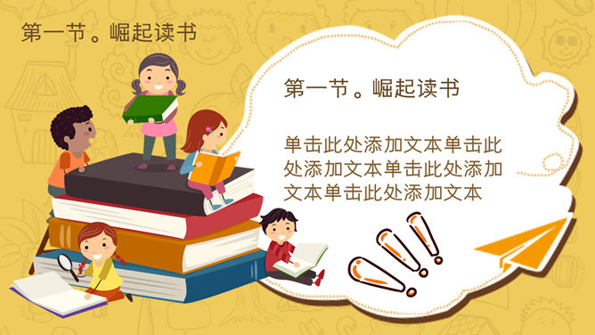开学第一课学生返校PPT模板。一套可爱卡通风格幻灯片模板,新学期开学返校主题,手绘纸片设计效果。