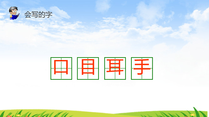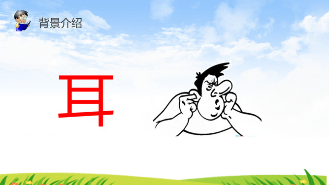 《识字3 口耳目》背景介绍、文字书写、文字解释、文字解释、正确书写姿势。口 耳 目 手 足。站如松,坐如钟。行如风,卧如弓。感谢各位的聆听。所属专题: