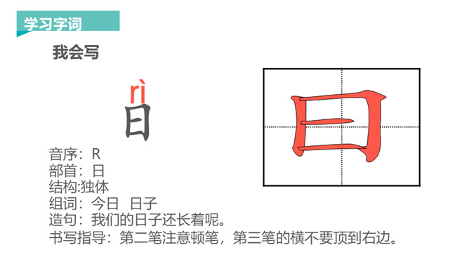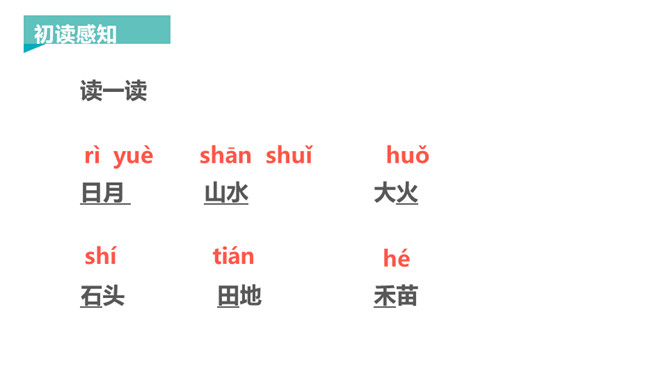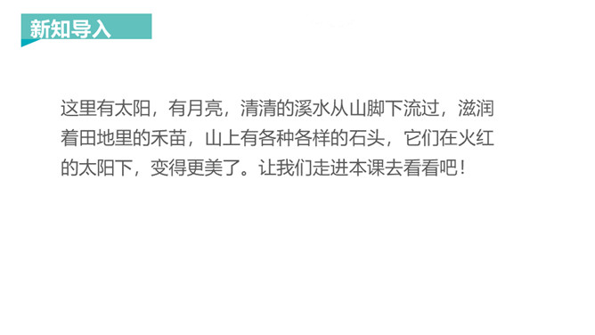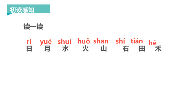 这里有太阳,有月亮,清清的溪水从山脚下流过,滋润着田地里的禾苗,山上有各种各样的石头,它们在火红的太阳下,变得更美了。让我们走进本课去看看吧!本课几个字都是象形字,开始造字时,它们都与事物的形状是相似的,后来慢慢演变成了现在规范的汉字,这些规范的汉字与它们原来的字形仍是很相似的。汉字是我国古代先民发明的记载工具,是世界上最古老的文字之一,拥有几千年的历史,其使用最晚始于商代,历经甲骨文、金文、小篆、隶书、楷书(草书、行书)等书体变化。所属专题:日月水火ppt。