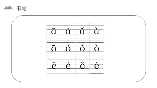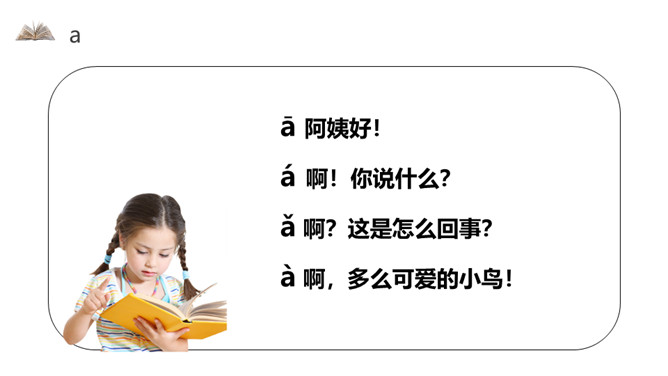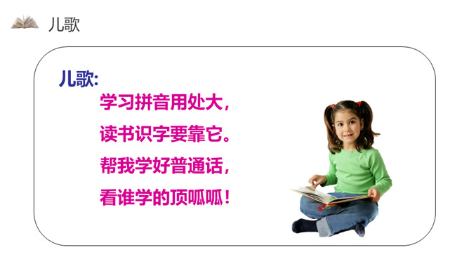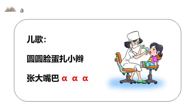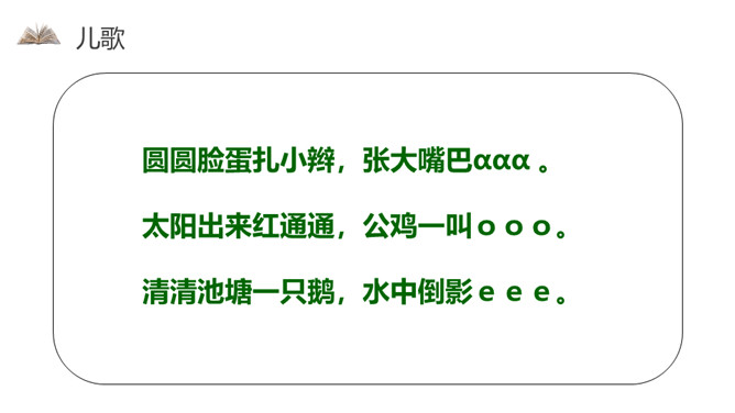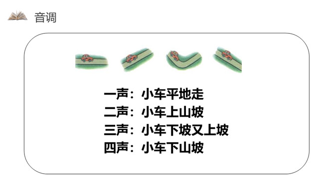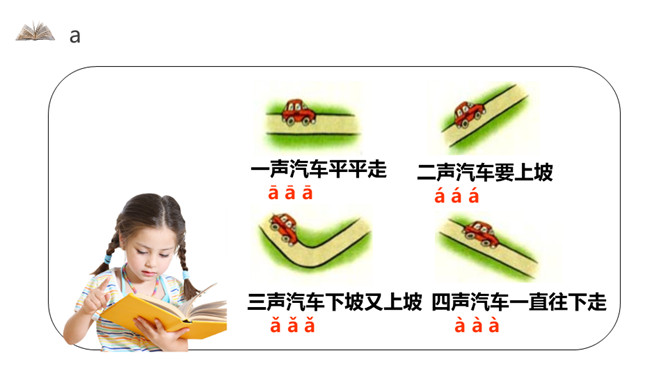 儿歌:学习拼音用处大,读书识字要靠它。帮我学好普通话,看谁学的顶呱呱!圆圆脸蛋扎小辫,张大嘴巴 ɑ ɑ ɑ。ā 阿姨好!á 啊!你说什么?ǎ 啊?这是怎么回事?à 啊,多么可爱的小鸟!1笔写圆圈,从左到右写。横折左半圆,1笔完成e。一声:小车平地走。二声:小车上山坡。三声:小车下坡又上坡。四声:小车下山坡。所属专题:《aoe》ppt。